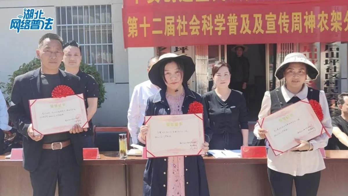5月24日下午,在绿水青山环绕着的神农架林区,湖北网络普法走进宋洛乡后山坪村村委会的院坝里,村民们围坐在一起,边看手里的宣传资料,边听普法宣讲。