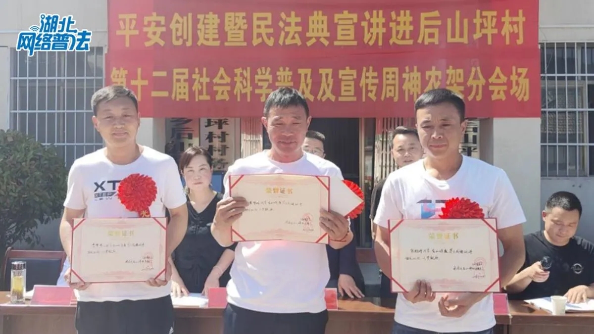 林区文联、社科联宣讲了平安村创建的意义、内容、标准和方法,呼吁村民们都要全员参与到“平安神农架”“平安后山坪村”的创建中去。宋洛乡法庭以“美好生活·民法典相伴”为主题,从村民普遍关心的农村彩礼纠纷、赡养老人、留守儿童权益保护等敏感问题入手,通过以案释法的方式,用通俗易懂的语言进行了接地气的宣讲,让群众听得明白,记得深刻。村支部书记就学习贯彻党的二十大精神、农村建房审批、劳动合同纠纷处理等和生产生活息息相关的热点难点问题进行了宣讲,引导群众学习法律知识,运用法律武器保护自己的合法权益。