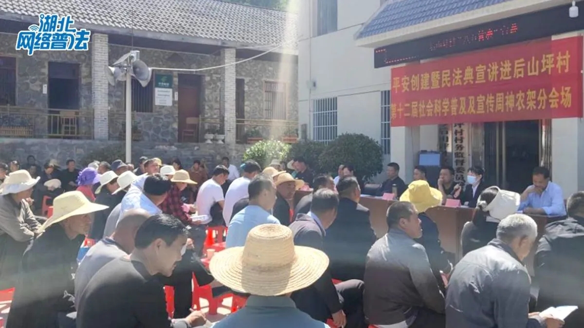 2023年是贯彻党的二十大精神的开局之年,是“八五”普法规划实施中期之年。为深入学习贯彻习近平法治思想,紧紧围绕党委、政府中心工作和群众关心关注的问题,在增强普法工作的针对性、时效性上下功夫,在加强基层依法治理和落实普法责任制上求实效,正值神农架林区平安创建及第三个“民法典宣传月”来临之际,神农架林区文联、社科联、乡村振兴局、宋洛乡派出所、法庭等单位,携手组成宣讲团,在后山坪村开展普法活动。