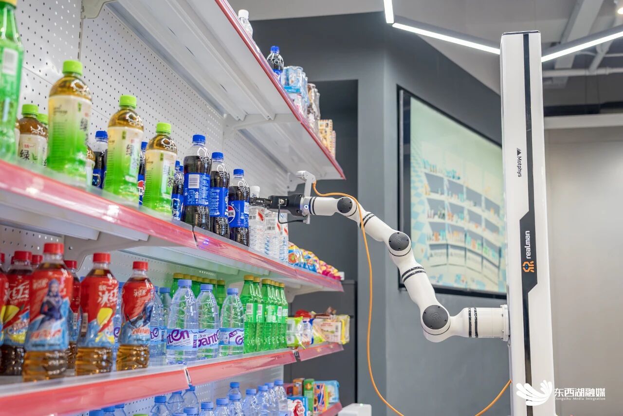 记者在虚拟超市取饮料,机器人“秒懂”,在现实世界同步取同款。