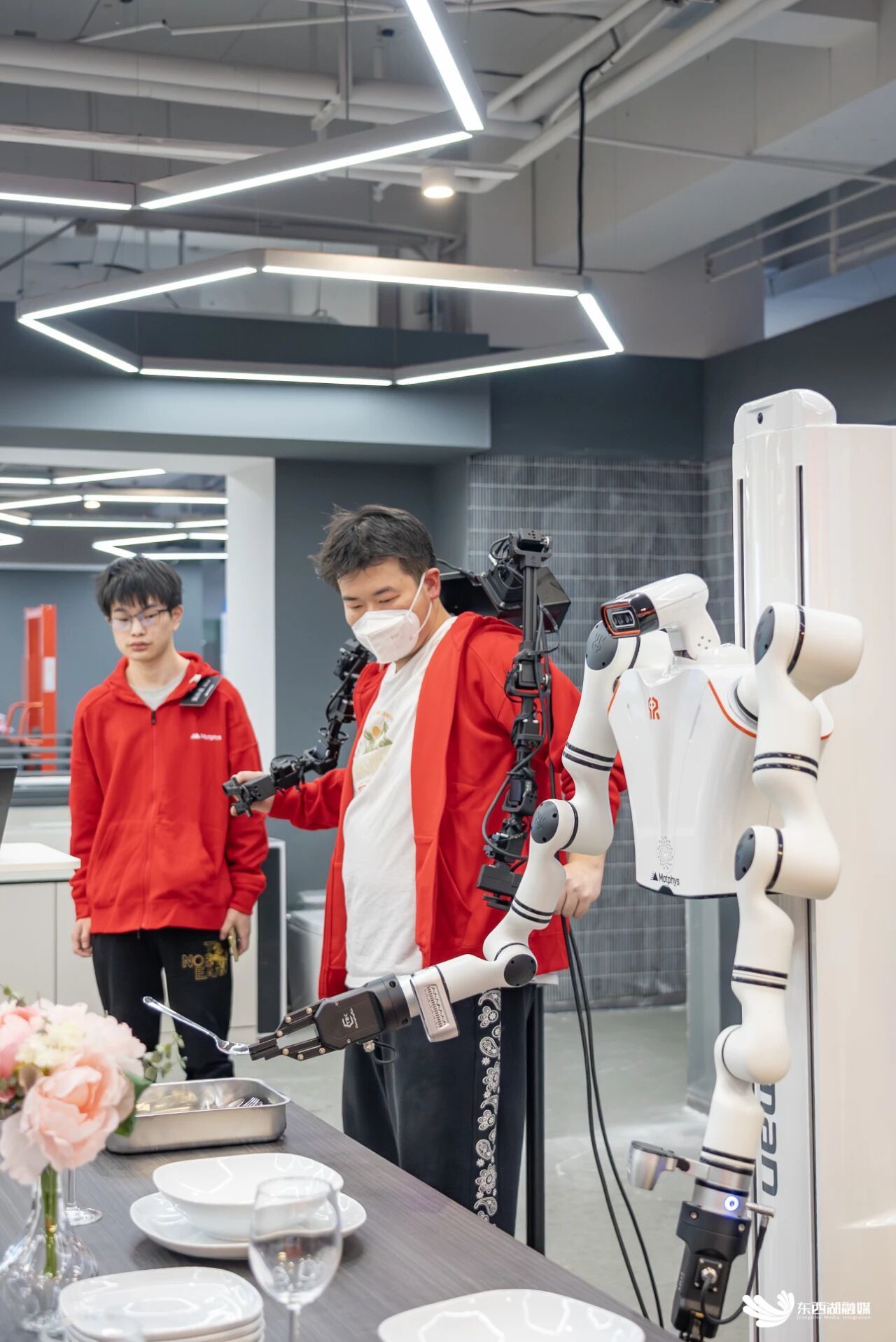 当记者进入虚拟超市,伸手从货架上拿下饮料时,现实世界的机器人立刻“秒懂”,也从货架上取出同款饮料。在虚拟卧室,当记者叠好被子,机器人也随即将被子折成了豆腐块。