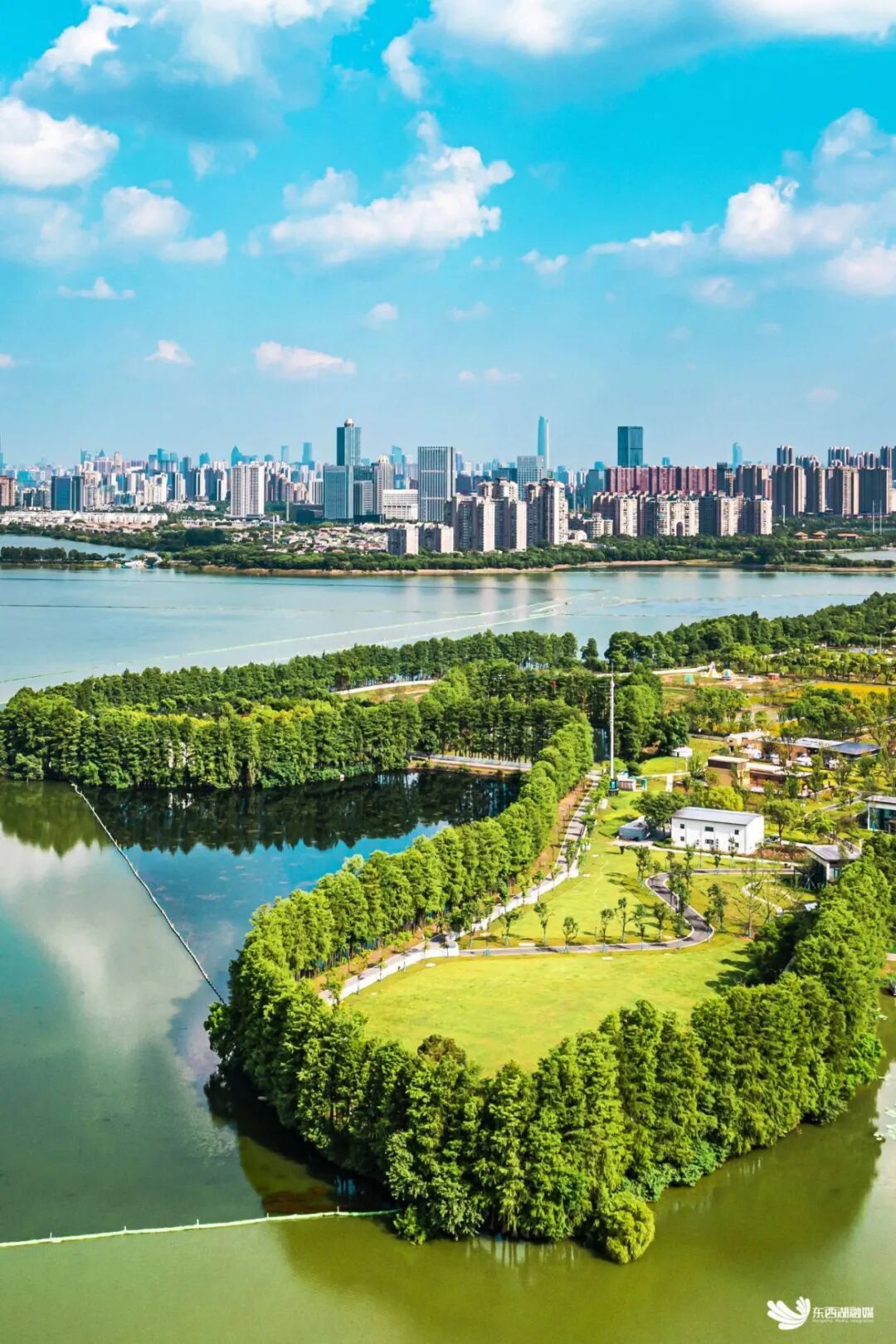 金银湖、杜公湖两座国家级湿地公园镶嵌城市肌理,26个湖泊水质均达Ⅳ类以上,全区建成各类公园、游园超90个,绿化覆盖率达48%,这里“水在城中、城在绿中、人在景中”,置身东西湖工作生活,生态美景从“奢侈品”成为“寻常事”。