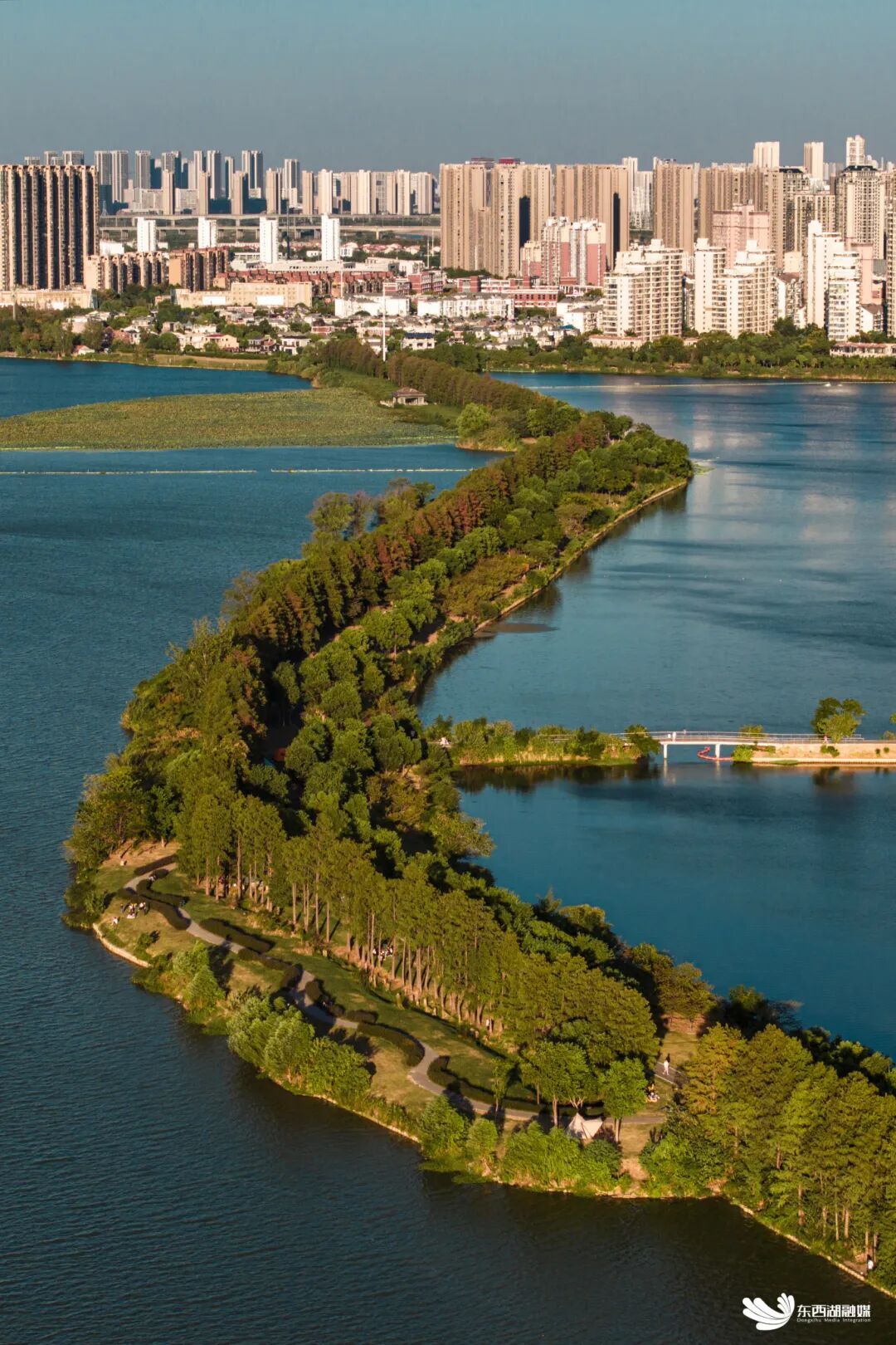 东西湖,史属古云梦泽东隅,五千年前便有先民踏水聚居、渔猎耕耘,柏泉茅庙集印刻着千年市集的繁华喧嚣,新沟古镇述说着汉水码头的光阴故事。东西湖因湖得名,缘水而兴,一条由南至北的垄岗地带分隔开东、西两大泛水湖群,“东西湖”之名由此而来。