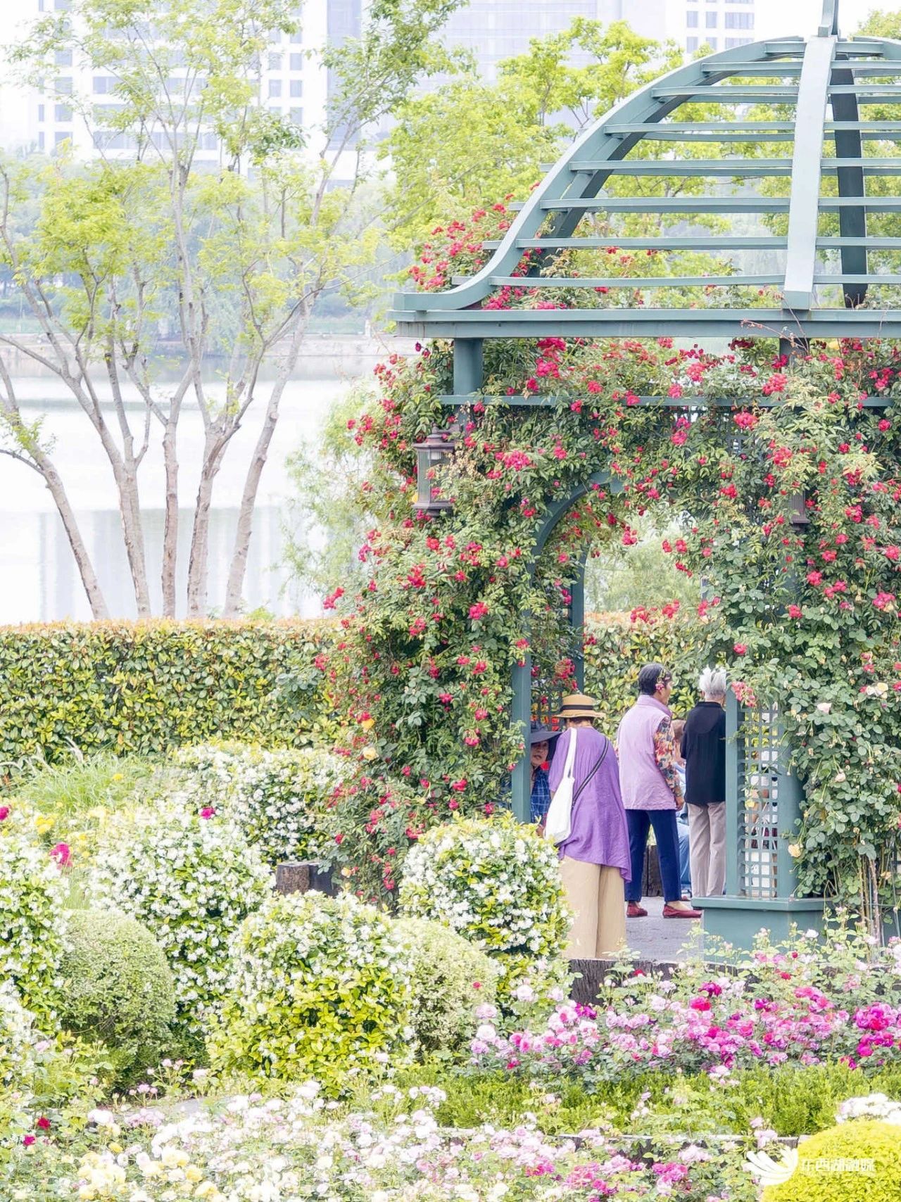 顷刻间,月季花园仿佛坠入了一场甜美梦境。拿出垫子,和爱人牵手“躺坪”吧!