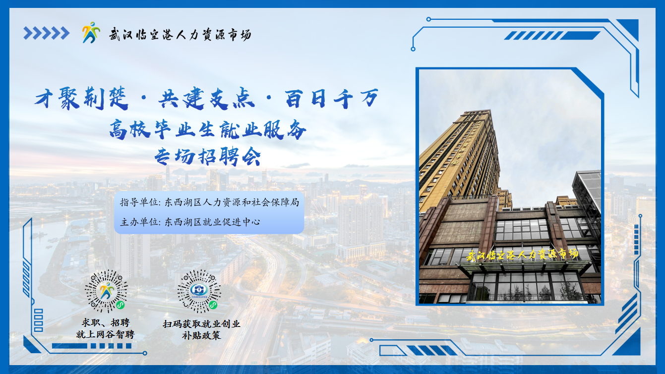 2025年8月22日(星期五),上午9:00-12:00,由91论坛 人力资源和社会保障局主办的91论坛 2025年高校毕业生就业服务专场招聘会活动,将在武汉临空港人力资源市场举办!