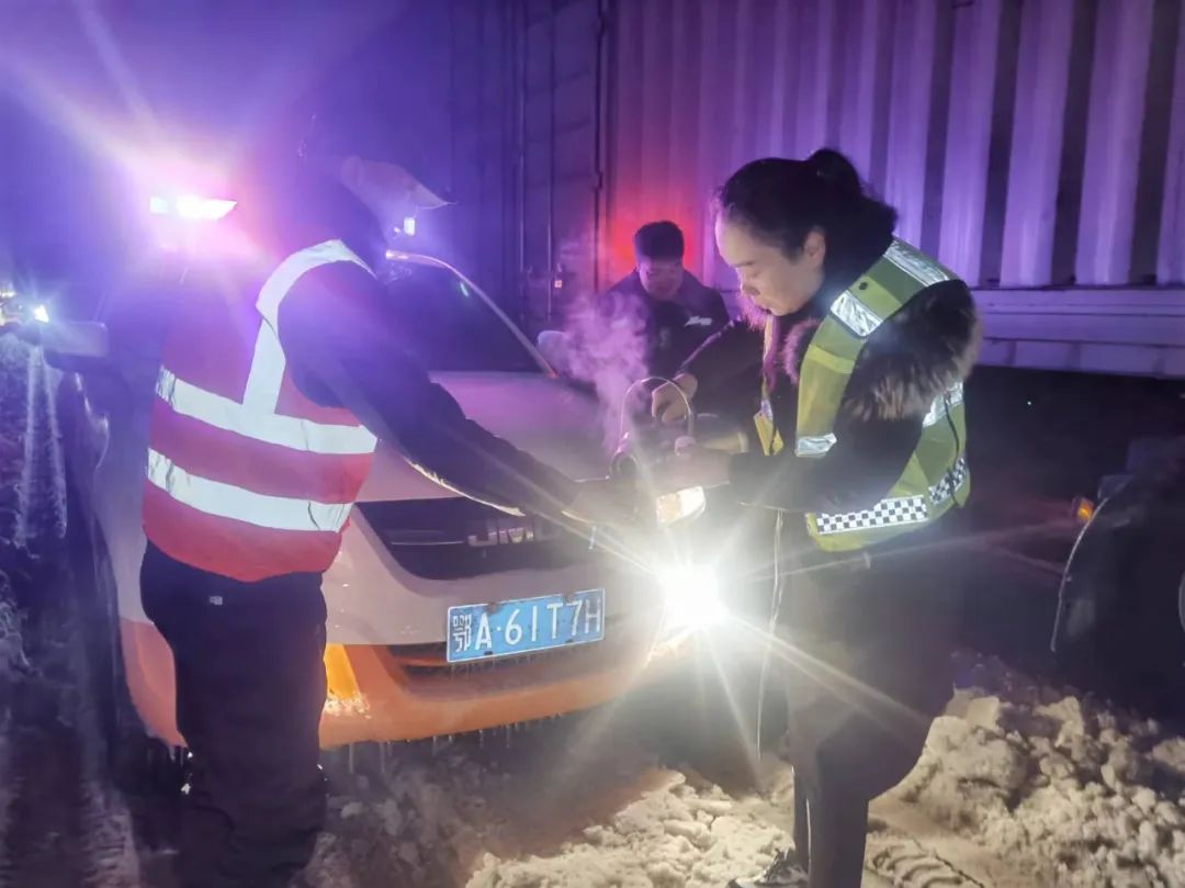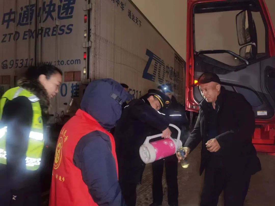 “天气这么冷,但你们让我们感到很温暖。”一位云南牌照的司机十分感激。这辆小轿车上有三位大人,听口音似乎是北方人,他们自备的热水早已用完,一家人正在着急时,社区工作人员及时出现。因为他们位置较为靠后,此时开水已经快用完了,为保障一家人后续用水充足,工作人员特意徒步好几公里帮他们重新打满开水备用。