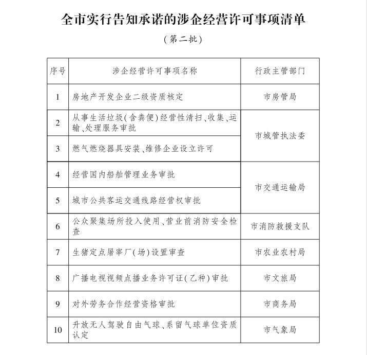 根据《省人民政府办公厅关于印发湖北省全面推行证明事项告知承诺制工作实施方案的通知》(鄂政办发〔2021〕8号)、《市人民政府关于印发武汉市全面推行证明事项和涉企经营许可事项告知承诺制工作规程(试行)的通知》(武政〔2021〕8号)要求,为深入推进简政放权、放管结合、优化服务改革工作,进一步优化营商环境,经市人民政府同意,现将我市实行告知承诺的证明事项和涉企经营许可事项清单(第二批)予以公布。