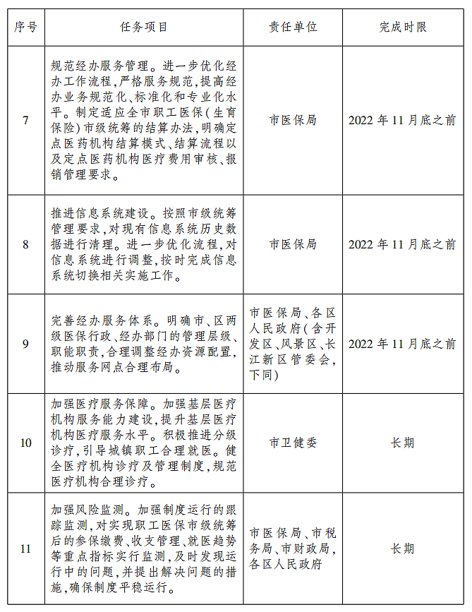 在2022年底之前,将职工医保基金市级调剂金模式调整到全市统收统支模式,全面做实职工医保市级统筹。