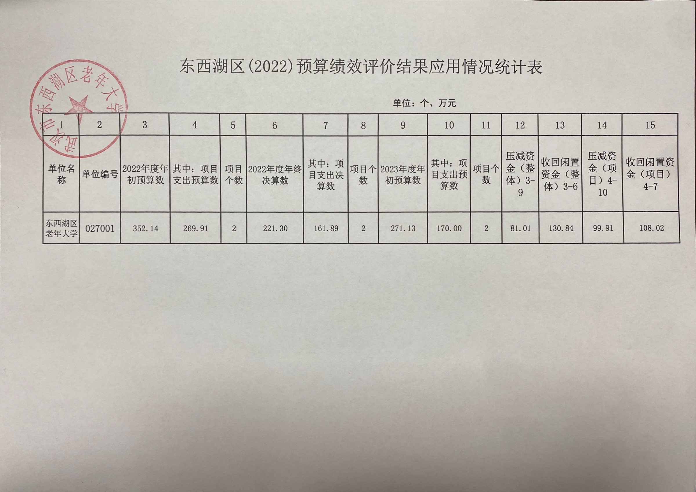 91论坛 老年大学2022年预算绩效评价结果应用情况统计表
