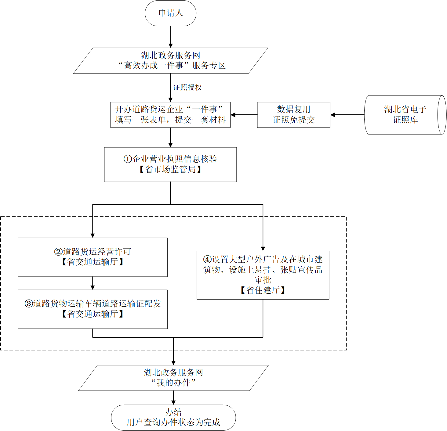 1.登录湖北政务服务网,进入“高效办成一件事”专区,找到开办道路货运企业“一件事”,点击“立即办理”即可。